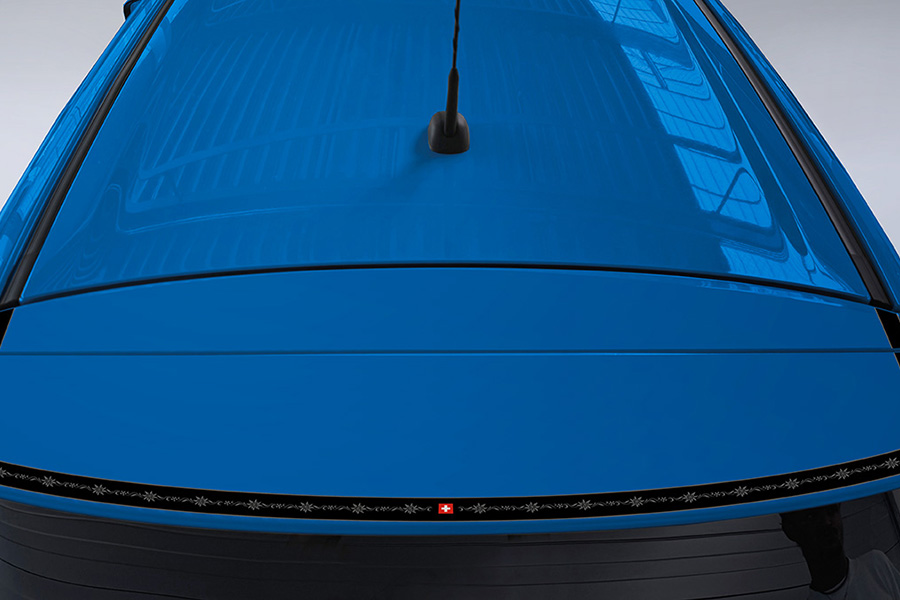 Optisch unterscheidet sich das Sondermodell durch spezielle Embleme an den Dachpfosten, am Lenkrad, am Getränkehalter und an den Kopfstützen. Am Dachspoiler prangen Edelweiss und ein Schweizerkreuz.