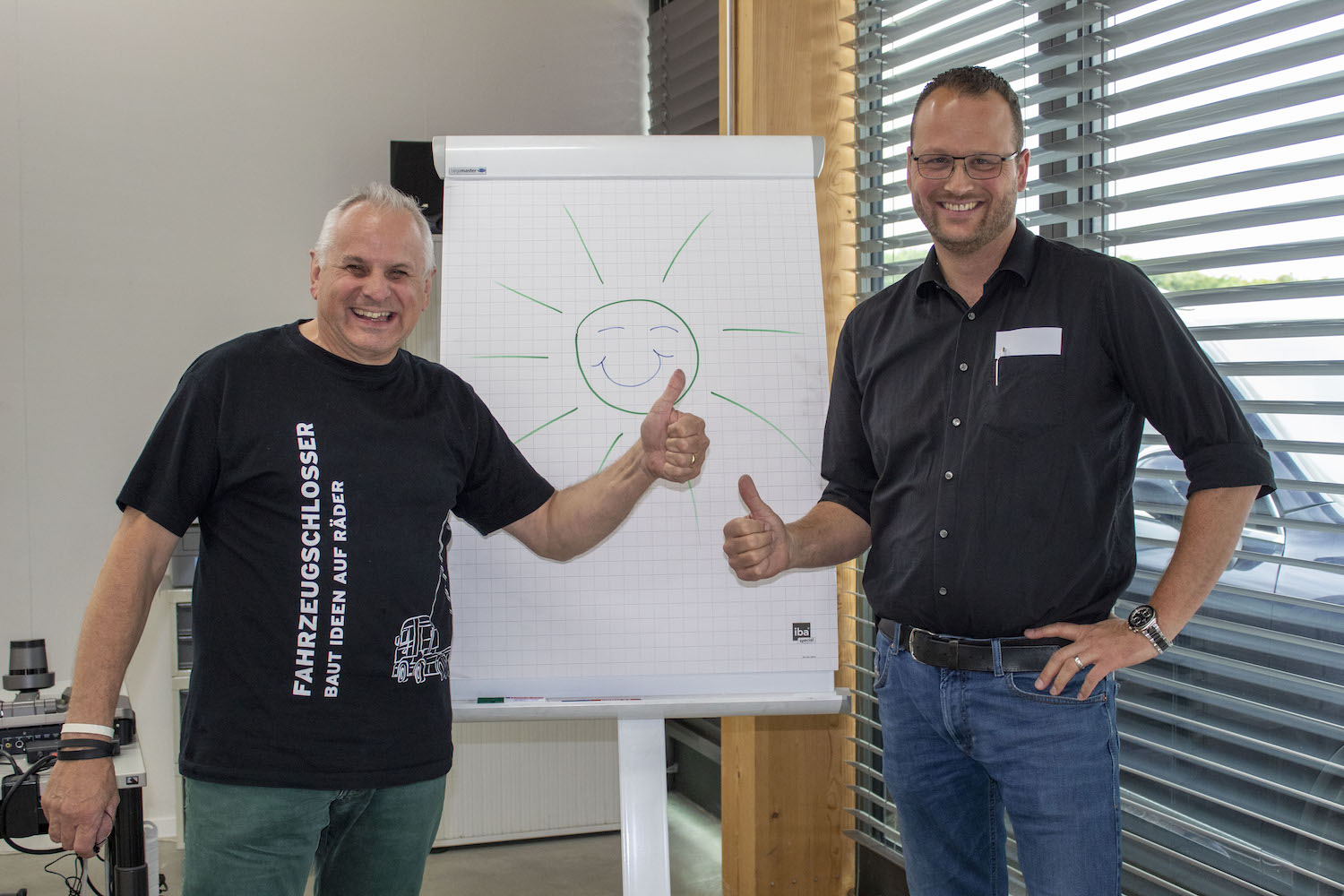 Und der begann bereits um 07:00 Uhr – mit dem Einrichten der Arbeitsplätze. Eine Stunde später – nach einer kurzen Begrüssung und Erläuterung über den Ablauf des Wettkampftages und der Klärung einzelner Fragen durch den Chefexperten Robin Lang und Martin Eggimann – erfolgte der Anpfiff zu einem Wettbewerb, dessen komplexe Aufgabenstellung die jungen Fahrzeugschlosser noch fordern sollte.