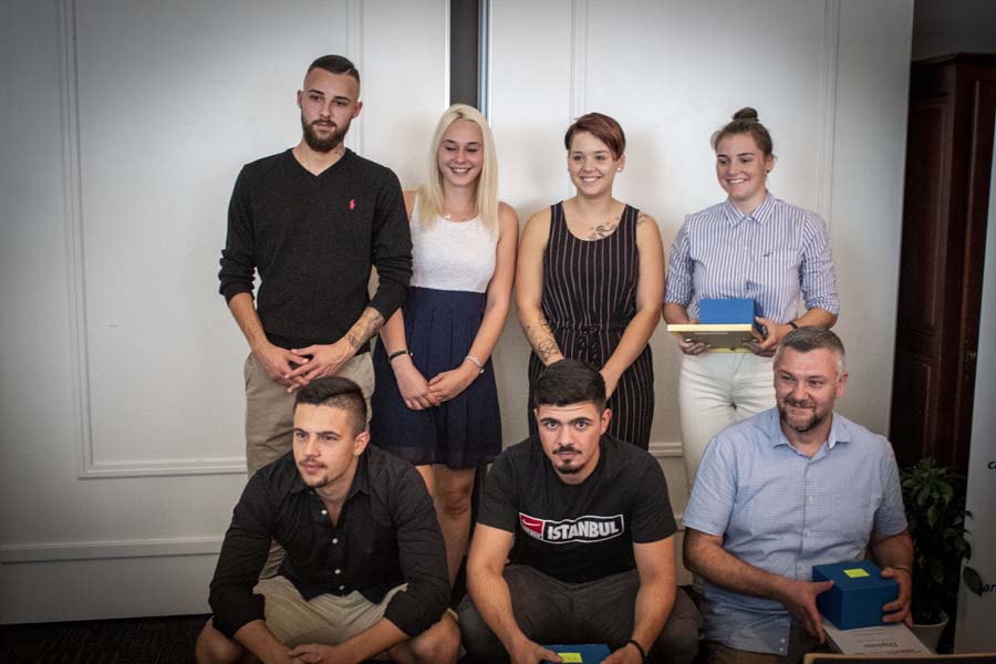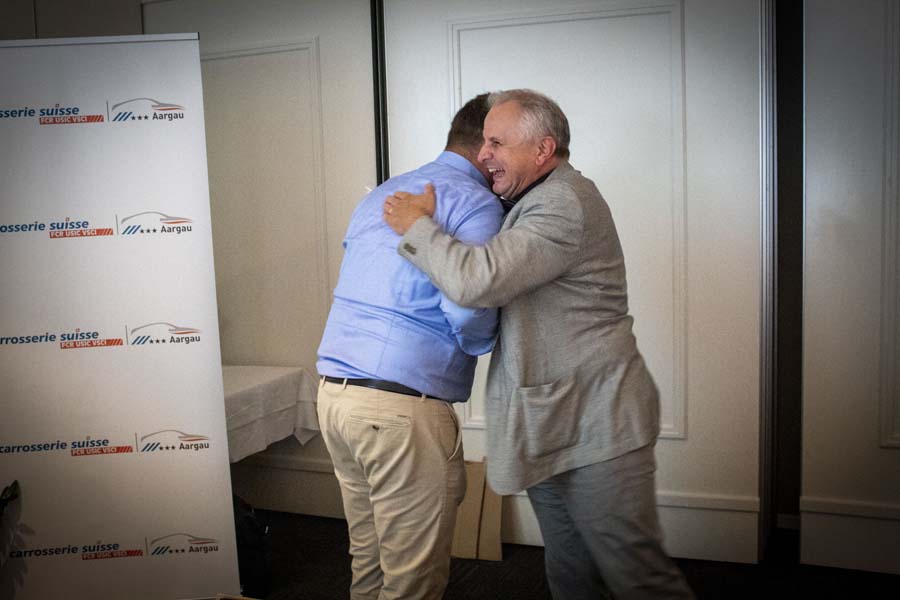 Die zündende Idee, welche dem Brainstorming im Vorstand entsprang, war die folgende: «Wir legen Generalversammlung und QV-Feier einfach zusammen – zeitlich und örtlich.» Und so kam es, dass sich am Donnerstag, 17. September 2020 gegen 120 Personen im Gasthof zum Schützen in Aarau einfanden. Unter ihnen Verbandsmitglieder von «carrosserie suisse aargau», 31 Stimmberechtigte, einige Sponsoren und Ehrengäste – und eben rund 20 Lehrabgängerinnen und Lehrabgänger mit Freunden, Freundinnen und Familienangehörigen. Begrüsst wurden sie alle offiziell von Noch-Sektionspräsident Felix Wyss: Er bat die jungen Berufsleute zur Diplomübergabe und zum anschliessenden Fotoshooting einzeln nach vorne.