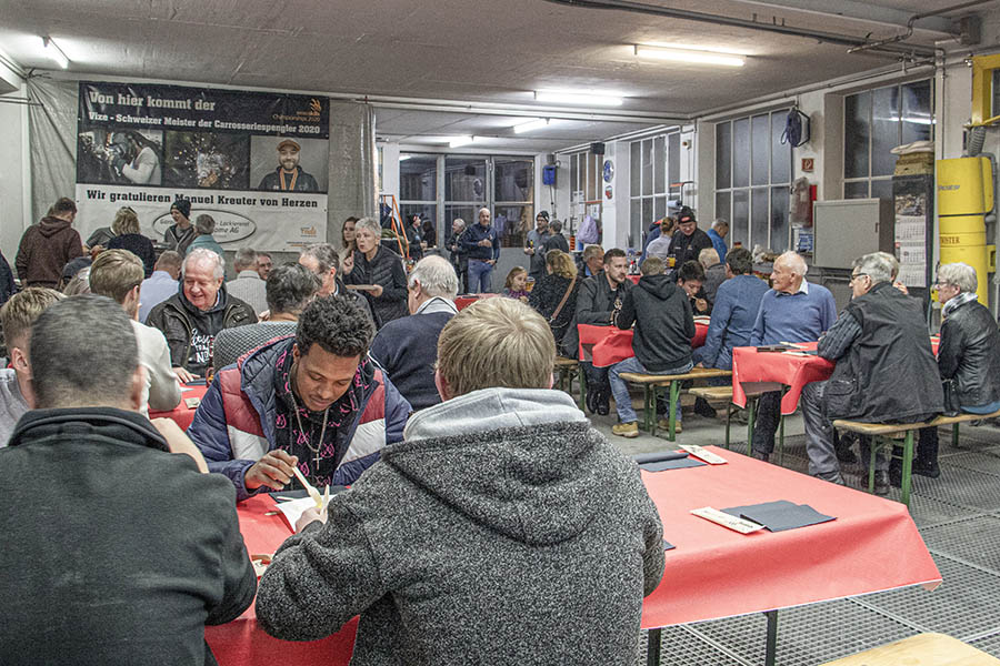 Der Chef liess es sich natürlich auch nicht nehmen, den Gönnern während der offiziellen Begrüssungsrede zu danken. Es sind dies – neben dem Engagement von Enzo Santarsiero und der André Koch AG, das Bartlome besonders heraushob – Repanet Suisse, Standox, Autersa, Blutech, Glas Trösch, Carbesa, 3M, Mobiliar, Spar- und Leihkasse Riggisberg, Carrosserie Suisse, Jasa und eben die «Garage – Carrosserie – Lackiererei Bartlome».
