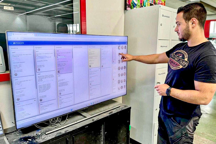 Der ehemalige Lehrling, der sich im Betrieb zum Leiter der Lackiererei hochgearbeitet hat, weiss übrigens auch alles über die jüngst installierte Software «Noacore»: Sie plant und optimiert Produktionsprozesse effektiv – und erlaubt die vernetzte Produktion mit allen Arbeitsgängen, Maschinen, Materialien und Mitarbeitern auf einen Blick und visualisiert mehrstufige Stücklisten mit Aktualisierungsassistent. Zudem sind dank ihr schnelle Materialbereitstellungen sowie Vor- und Nachkalkulation möglich (siehe Fotogalerie).