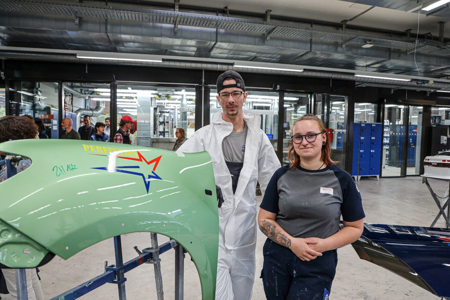De retour en salle de classe, Bruno Moser de l’Association suisse de carrosserie (Carrosserie Suisse) a informé sur les possibilités de formation continue après l’apprentissage, ainsi que sur celles durant l’apprentissage. À noter en particulier : la «mise au point» (concours des apprentis) en 3e année d’apprentissage en vue de la préparation aux examens finaux, ainsi que les championnats régionaux et suisses.